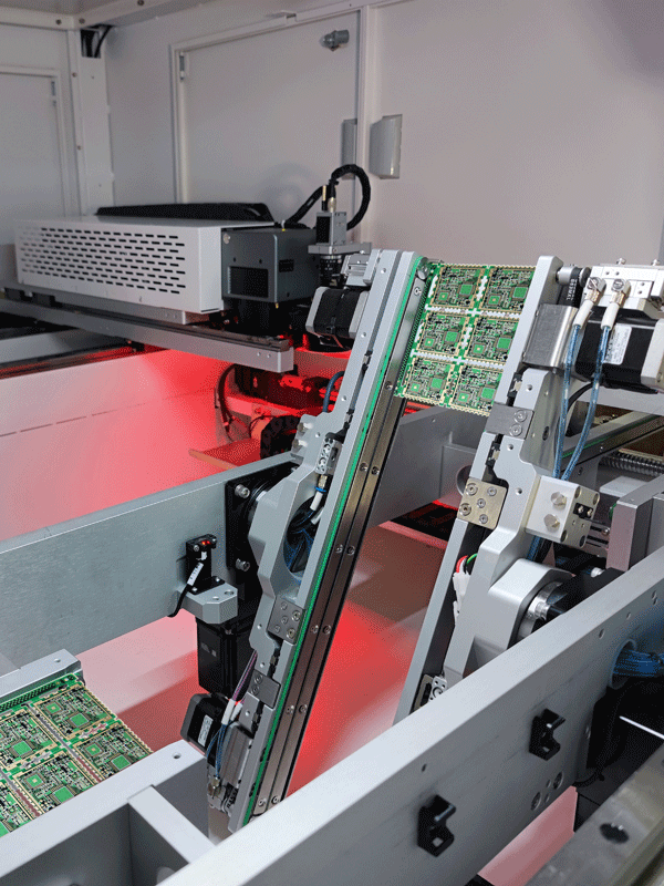 Martin ES-450 激光鐳雕機(CO2/UV/GN/FIBER)可在多種材料上 進行字符、圖形、條形碼和二維碼等標識處理,廣泛應用于機械電子、汽車電子、半導體、航空等行業。可輕松實現在電路板、金屬、陶瓷、塑膠、鋁、橡膠等物品上的標識。雙攝像頭設計,可實現定位點捕捉和條碼掃描監測。翻板結構設計通過電路板的翻轉,可直接實現雙面雕刻。軟件人性化設計,讓操作簡單易行,大大降低人員培訓時間。強大的軟件拓展功能,通過MES系統對接,完善企業生產管理系統。